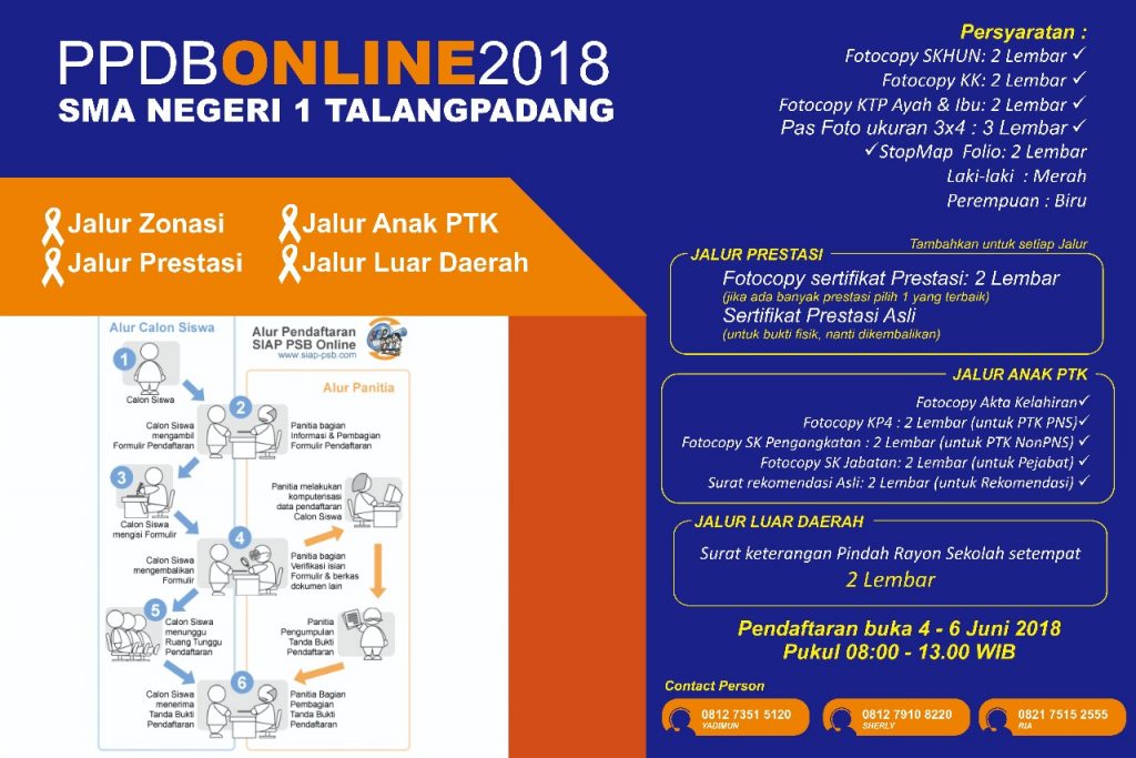 Kegiatan PPDB dimaksudkan untuk memberikan kesempatan yang seluas-luasnya bagi Warga Negara Indonesia usia sekolah yang memenuhi syarat tertentu untuk memperoleh pendidikan pada jenjang dan jenis sekolah secara obyektif, akuntabel, transparan, dan tidak diskriminatif sesuai dengan ketentuan yang berlaku. SYARAT PENDAFTARAN PESERTA DIDIK BARU SMA NEGERI 1 TALANGPADANG Formulir bisa anda download Disini DOWNLOAD FORMULIR JADWAL […]