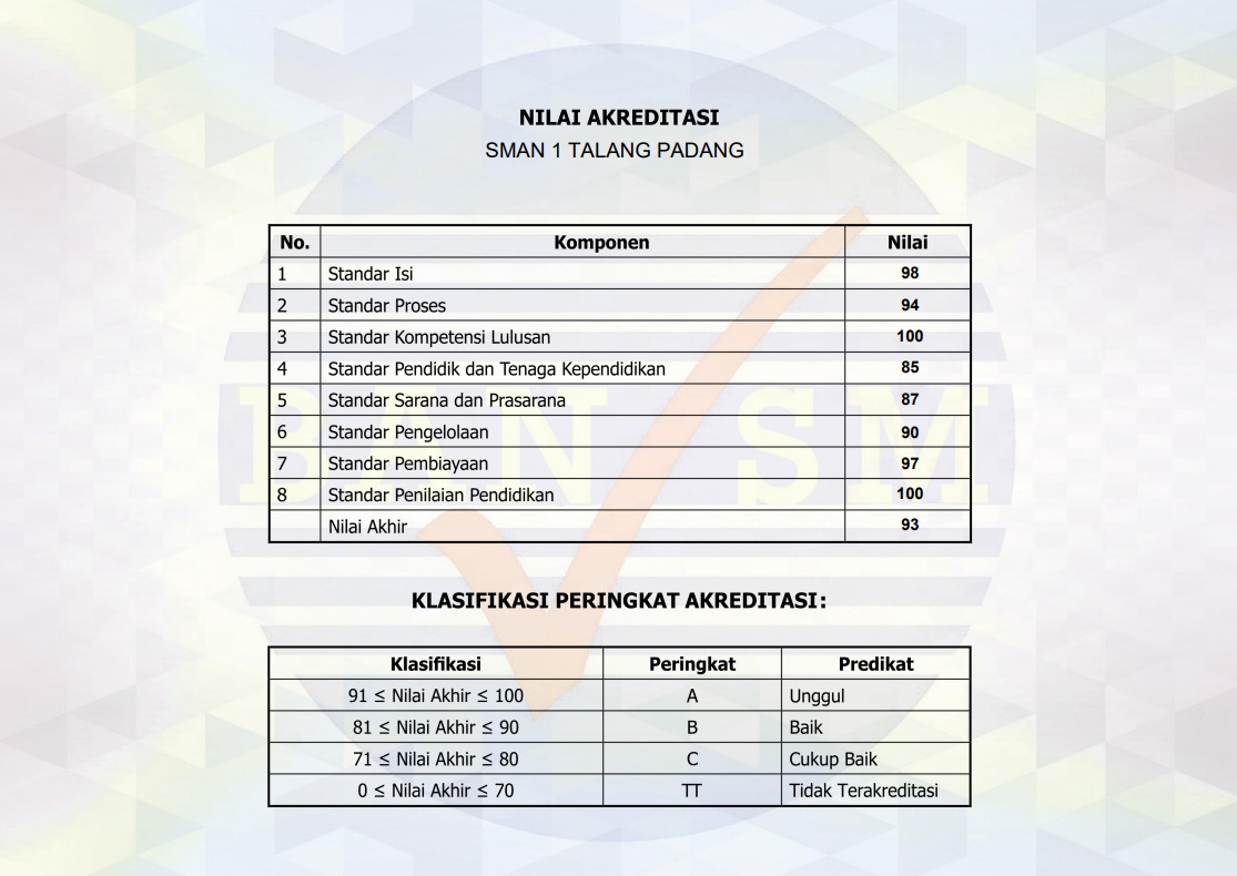 Info Sekolah AKREDITASI SMAN 1 TALANGPADANG TAHUN 2019 -2024 Posted on 16 Januari 2020 by admin 16 Jan admin SMANTAP EXPO ” CAMPUS GOES TO SCHOOL “ PEMBUKAAN PENDAFTARAN PENERIMAAN PESERTA DIDIK BARU SMAN 1 TALANGPADANG JALUR PRESTASI